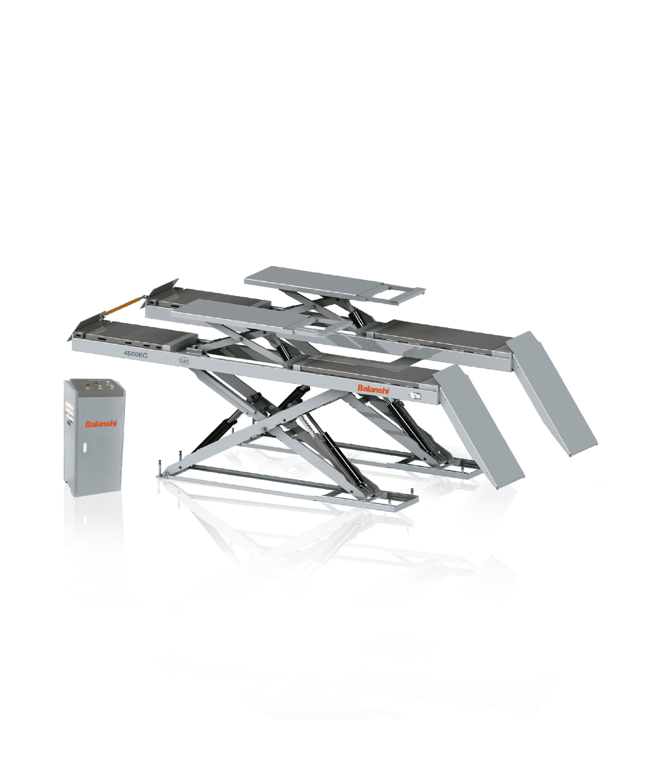 BALANSHI BLS 8545K 230mm Ultra-Thin Wheel Alignment Scissor Lift with Built-in Sub-Platforms, Professional Full Rise Car Hoist for Low Profile Vehicles, 3kW High Power Hydraulic Auto Maintenance Lift System